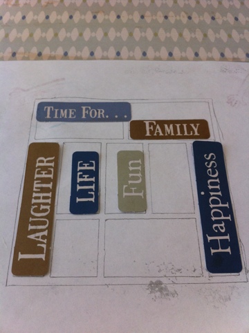 There’s a page of phrase punch outs which is where the “time for…” jumped out at me. I started punching them out and placing them on my template.